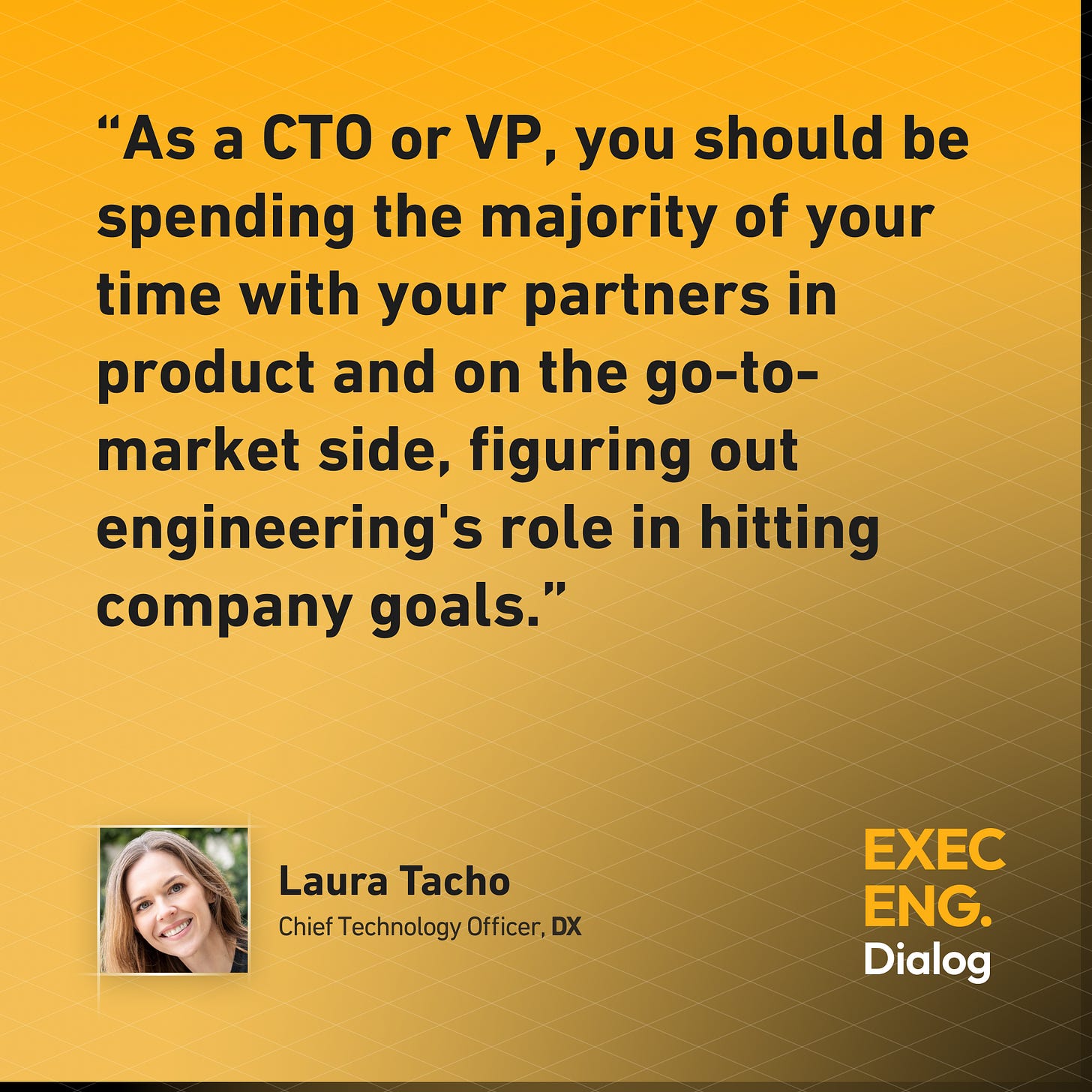 If you’re stuck in engineering details all day, that’s a signal that you either need to delegate more effectively or you’re missing skills on your eng leadership team that you need to coach up. You can’t have a business impact if you’re not working across the business—and VP and CTO roles are business leadership roles, not operational engineering roles.